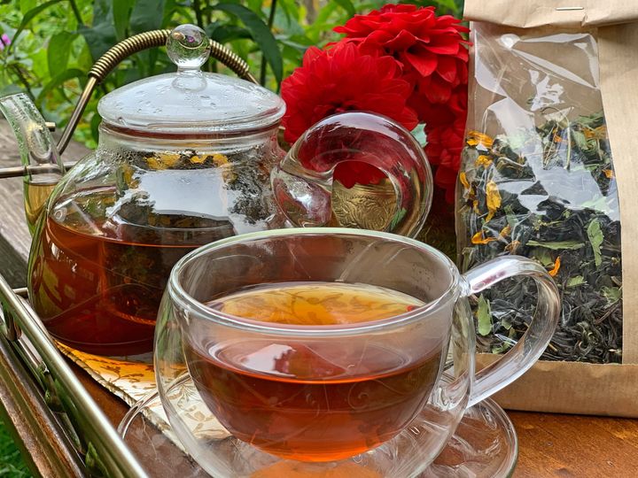 В этом году у нас начали изобильно расти все травы, которые до этого мы размножали из одного-двух экземпляров или выращивали из семян, потом снова размножали, чтобы получились товарные количества. Коллекция превращается в плантацию. Наши купажи — это полноценные чаи с богатым и терпким вкусом, без красителей (что особенно важно для любителей черного чая, который в варианте «из супермаркета» неизбежно осаживается на зубах, придавая им желтоватый цвет), высушенные естественным путем в тени.